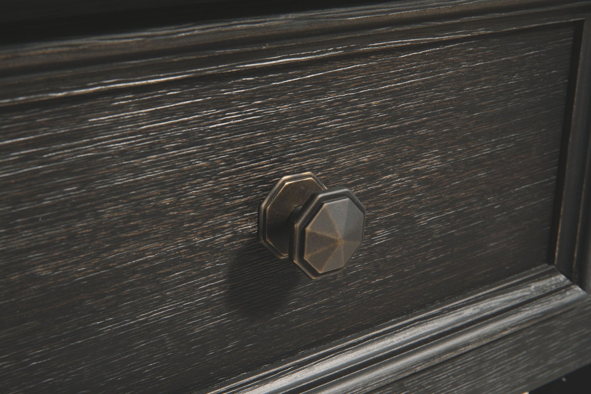 - Dark bronze-tone hardware