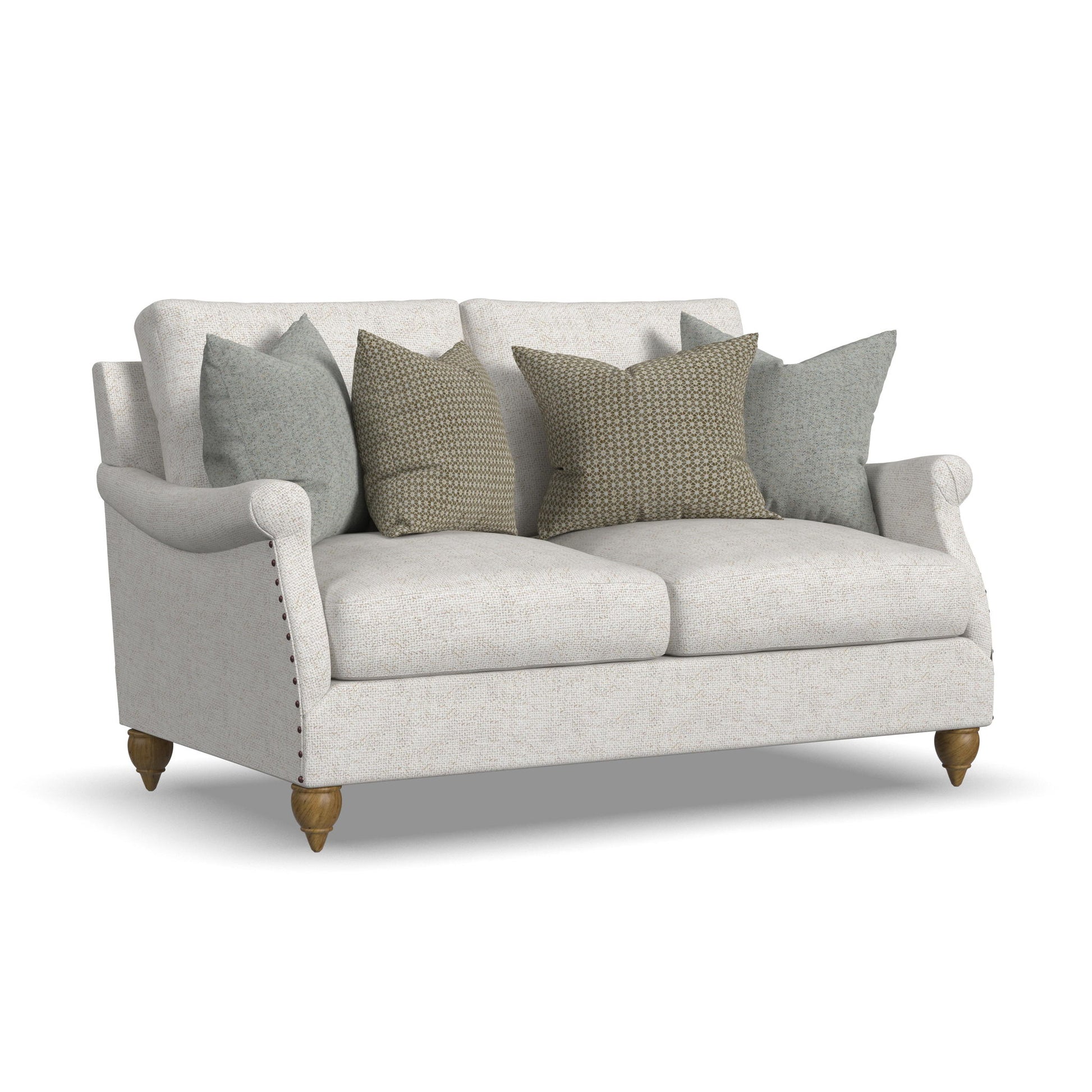 A Fresh Take on Timeless Style. Traditional elegance gets a fresh reinterpretation with the Veda loveseat. The petite, pleated roll arms, adorned with a simple nailhead trim, slope down onto stately legs, delivering timeless details and graceful curves that soften the room while adding an abundance of charm. Generous seat space, cushion fill choices, and the Blue Steel Spring at the heart of each seat ensure lasting comfort. And bring your room together with four accent pillows, orderable in your choice of fabric.