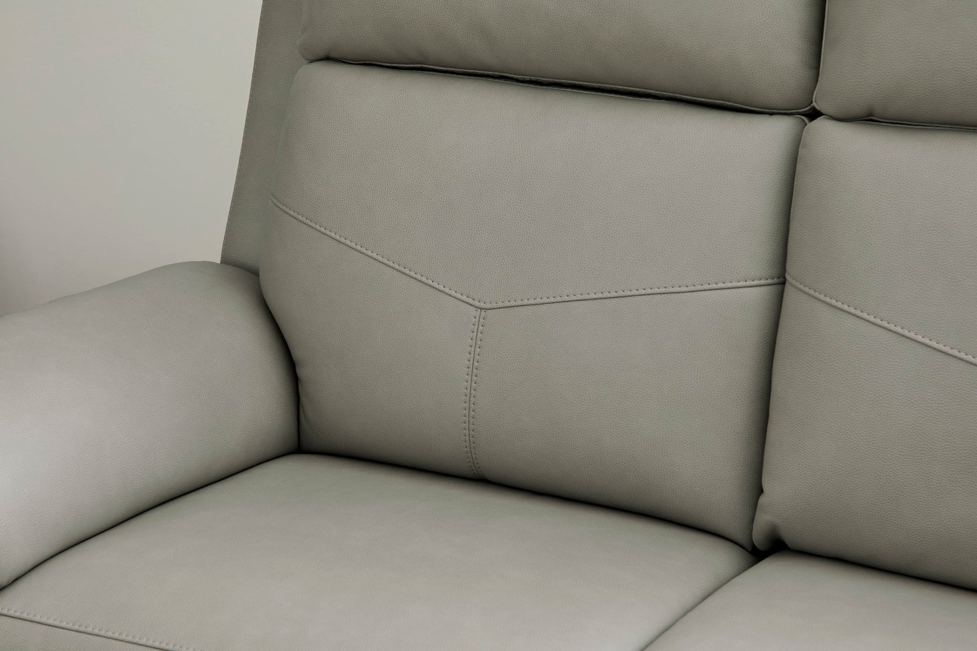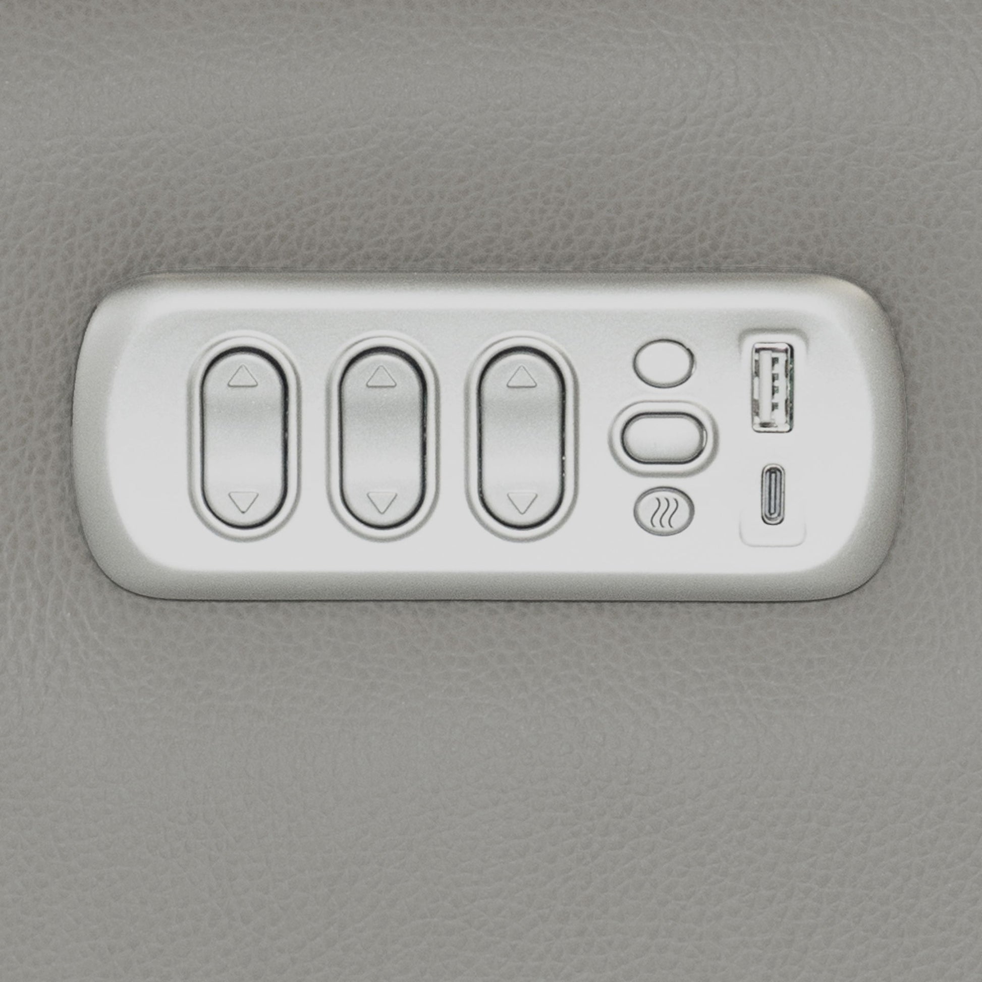 A versatile showstopper, the Vernon power reclining sofa has everything you need for ultimate comfort. Its sleek, modernized silhouette is upholstered in a family-friendly, leather-like fabric with CloudLux™ down alternative seat toppers and headrests that will put you on cloud nine. Customizable Zero Gravity recline, and adjustable heat and massage bring the best in relaxation, while the drop-down back cushion contains storage, cupholders, and a charging tray to keep everything you need within reach. Kick back and stand out, all with Vernon.
