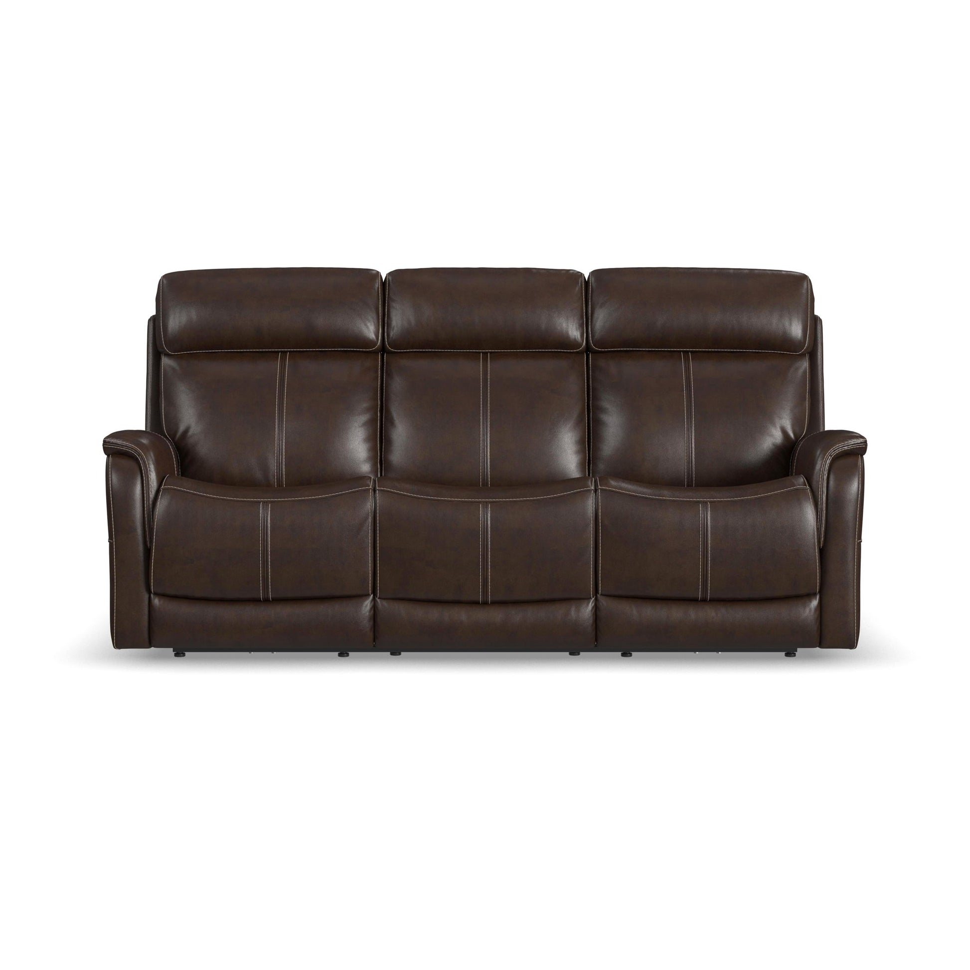 View - Power Reclining Sofa With Console, Power Headrest & Lumbar - Dark Brown