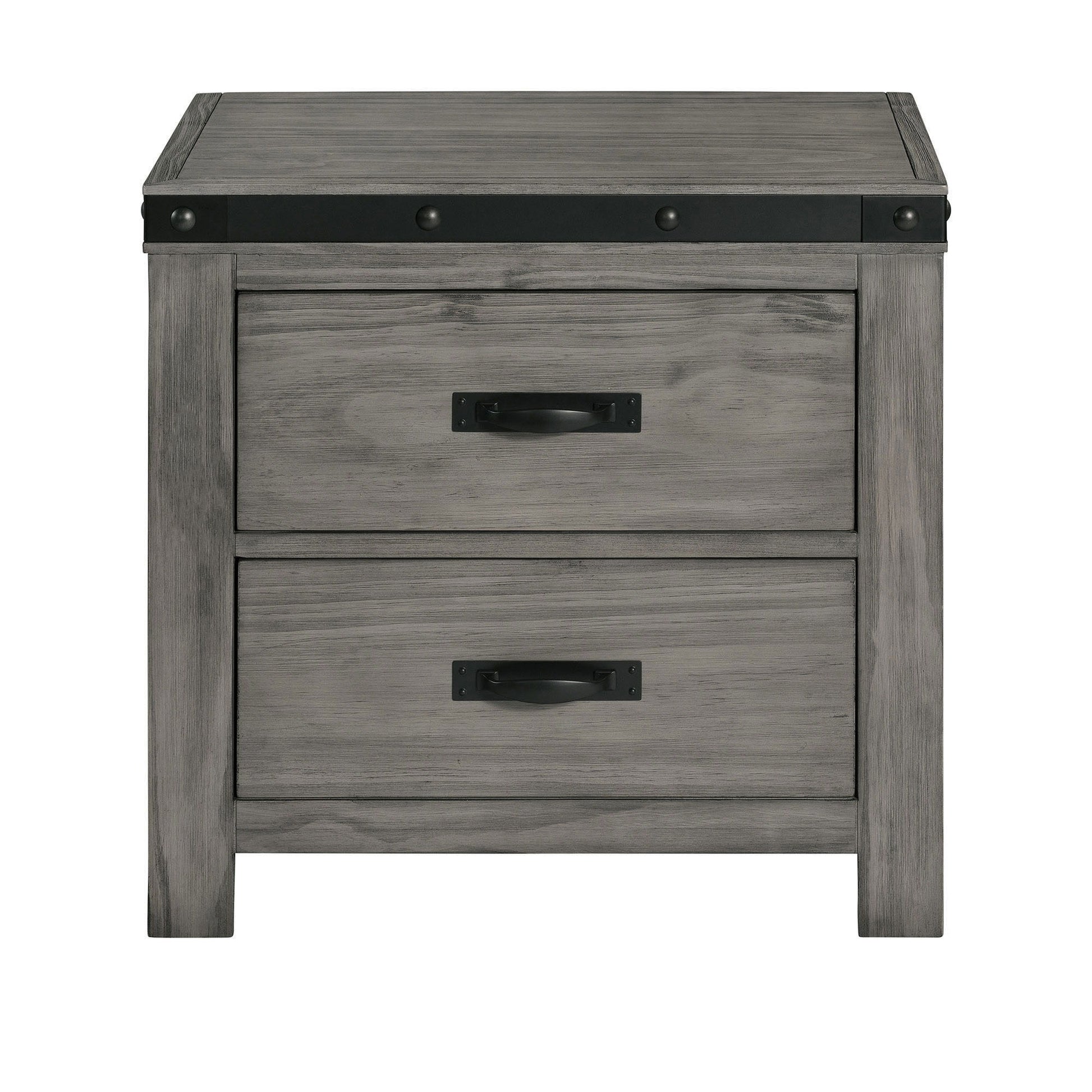 The Wade 2-Drawer Nightstand is the ultimate piece for your home! This bedroom staple comes with two, spacious drawers; perfect for easily keeping all of your bedside belongings neatly stored away. The bottom drawer features a dust proofing layer to help protect your belongings. The drawer pulls and trim along the top of the nightstand are both metal with a black finish. Along the trim on the nightstand are decorative bolts, adding a little extra flair. This nightstand is finished in a neutral gray, making it easy to pair with any existing decor or to find an excuse to completely redo your bedroom. Please note wood grains vary piece by piece and will not look exactly like the picture.