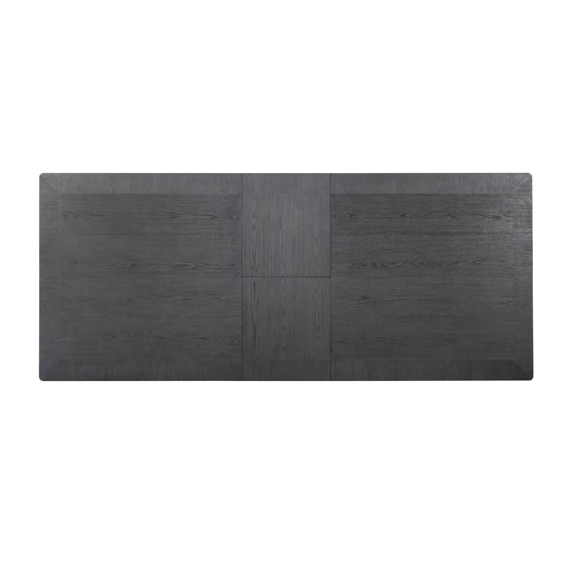 The perfect centerpiece for your next dinner party, this gorgeous dining table brings the ultimate in transitional style. The deep ebony finish fits seamlessly with the rich brown base accents for an on-trend color combination. Meticulously crafted from rubberwood solids and oak veneers, this piece is built to be everlasting. Complete with an 18” inch butterfly leaf that extends the table to a vast 100”, you’ll have ample space to host up to eight guests. The graceful namesake waterfall edges give this table true elegance.
