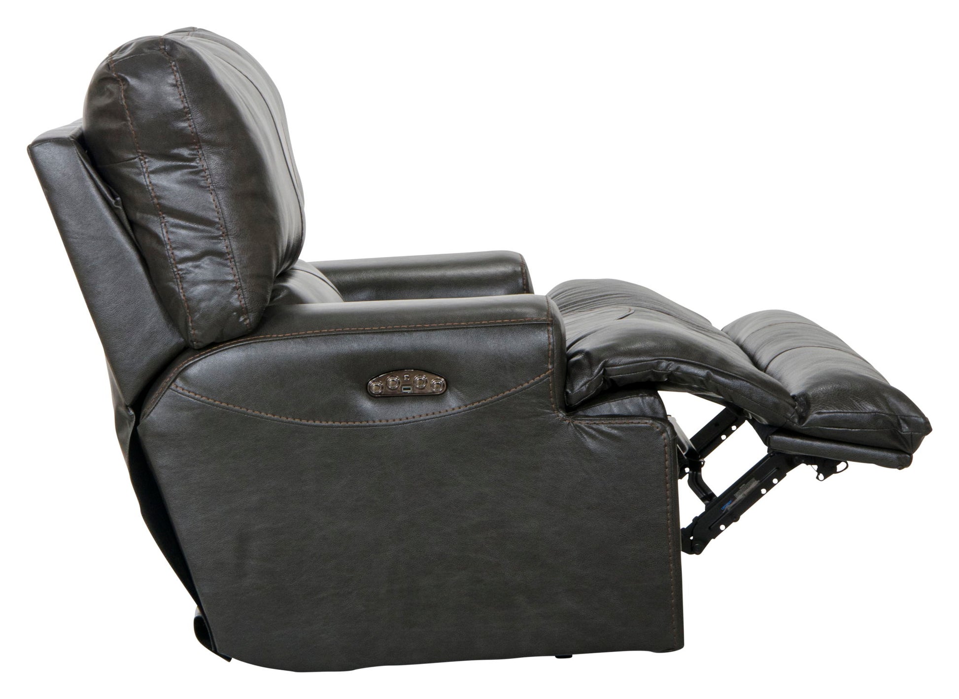 Wembley - Italian Leather Match Power Lay Flat Recliner With Power Adjustable Headrest - Steel