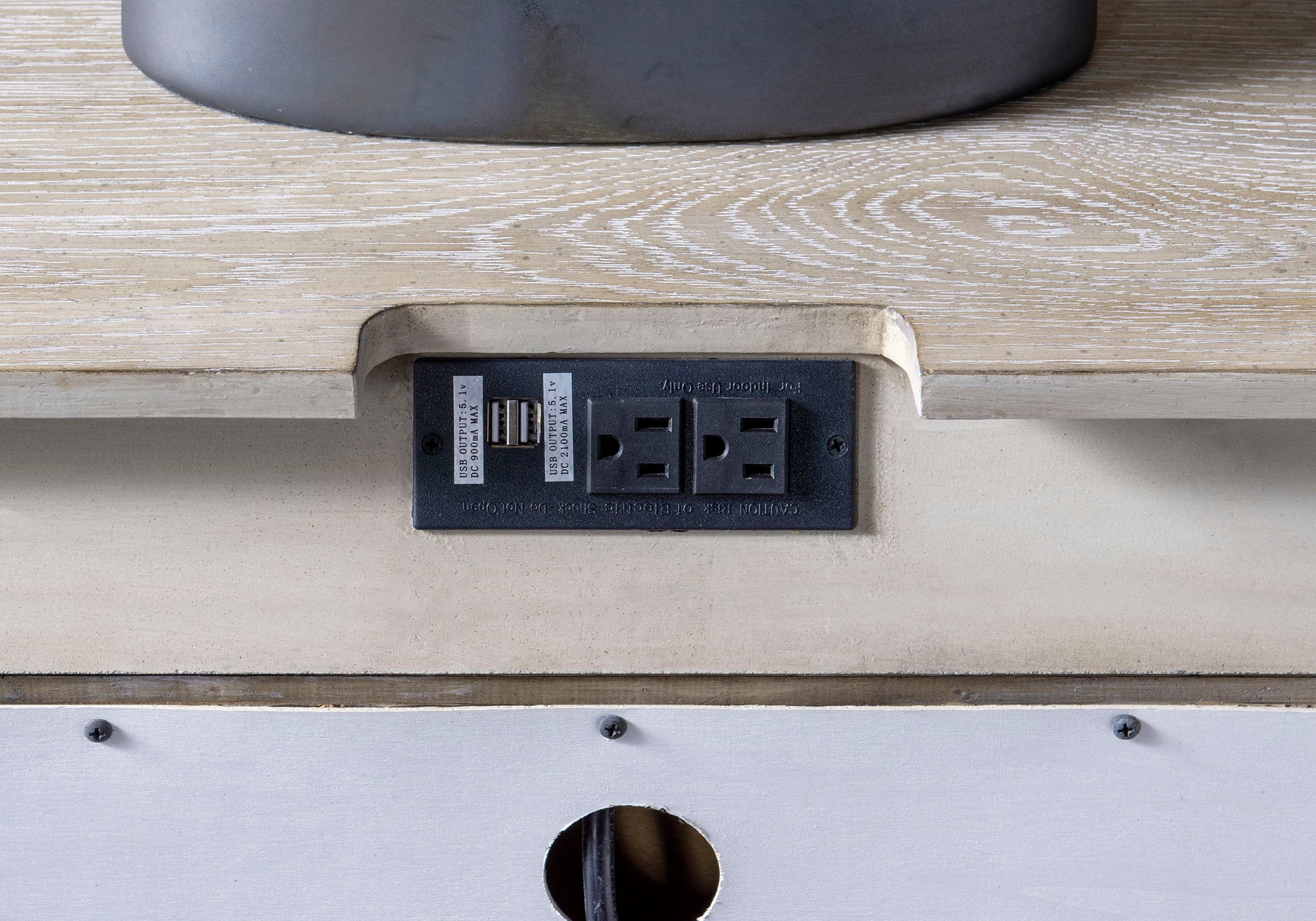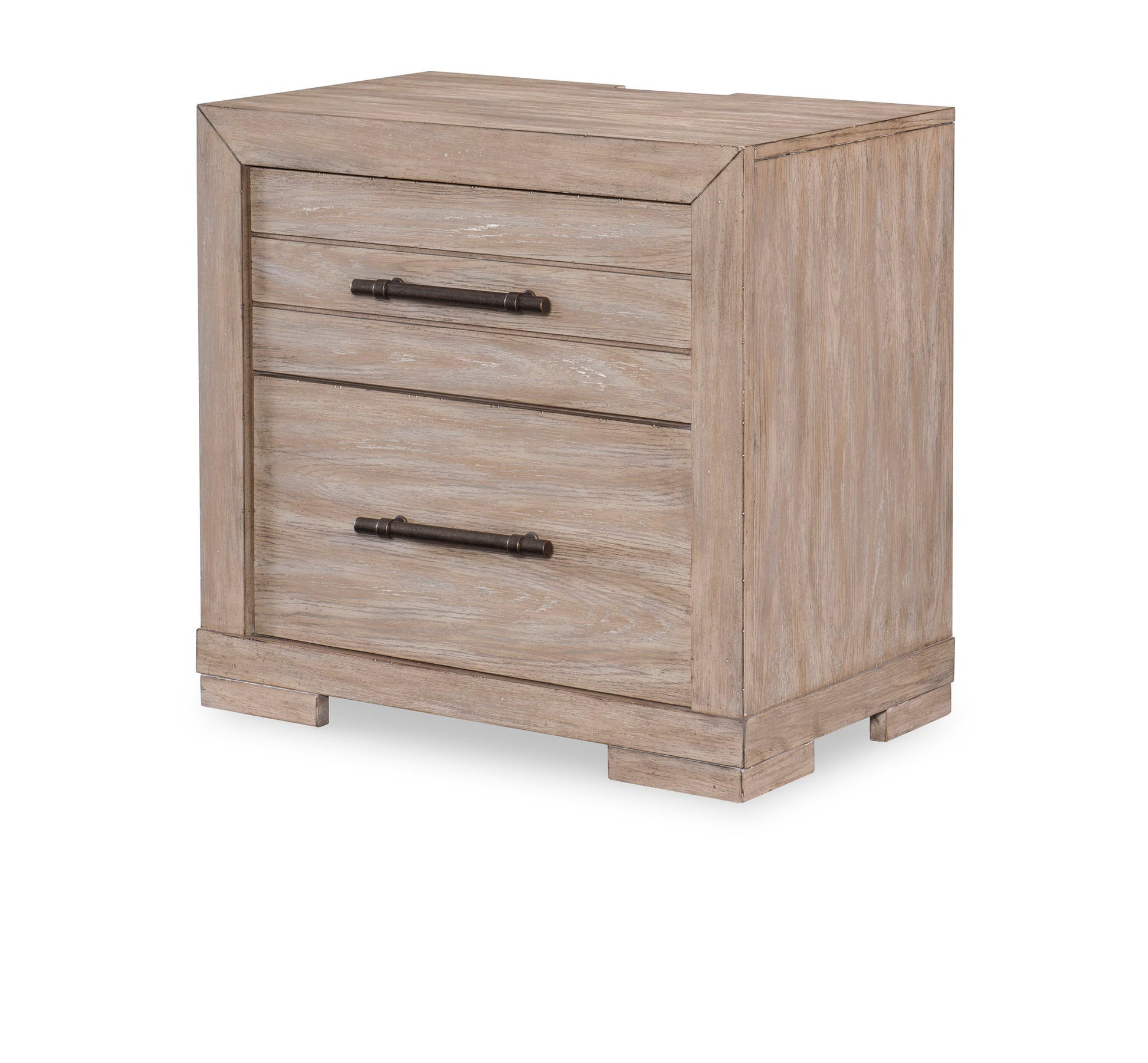 With clean lines and earthy tones, this nightstand offers plenty of function without sacrificing a warm, rustic modern style. Tuck away books in one of two deep drawers to keep your bedside clutter free. There is an outlet and three USBs on the back for clever wire management and overnight charging. The finish and rustic pewter hardware create a look that will easily fit with any bedroom décor.