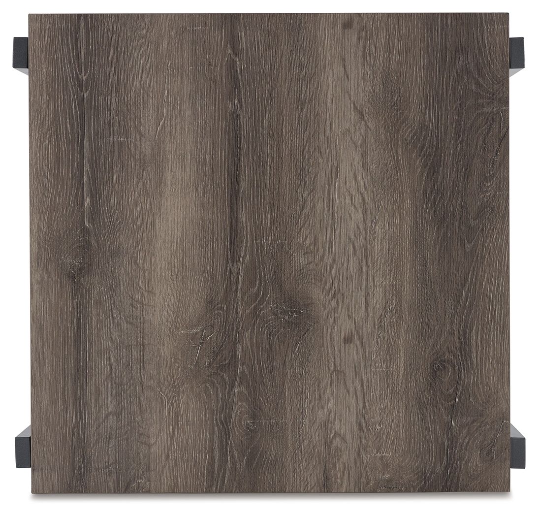 - Laminate features a replicated wood grain with a weathered gray coloration