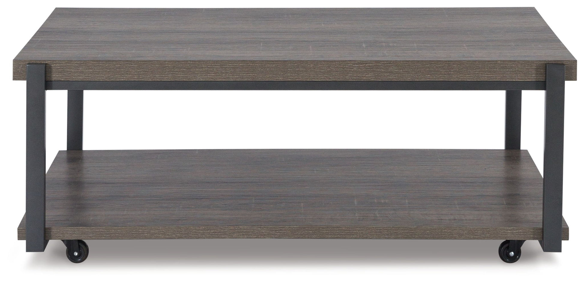 A cohesive, casual contemporary ensemble. This table set is equal parts sleek form and routine practicality. If you're hosting guests or need space to stretch out in a recliner, rolling casters on the coffee table clear up extra floor space in a snap. Each table is outfitted with a lower shelf for chic storage and displaying decor.