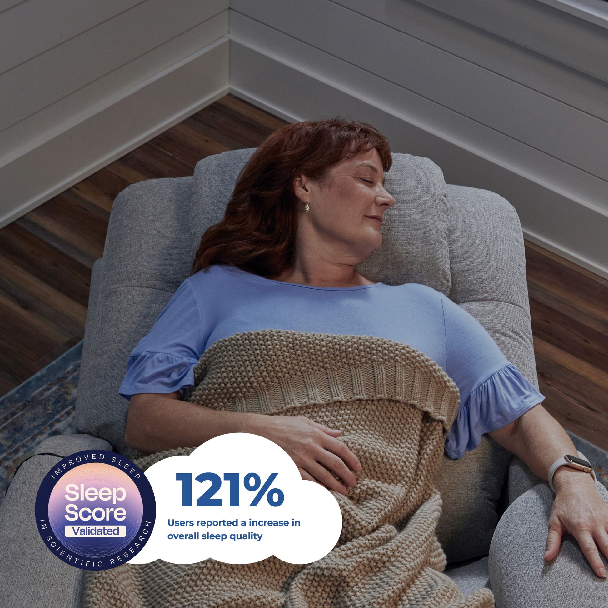 Cozy up in the Zecliner Model 2+ Power Lift Sleep Chair, your perfect family recliner by day, and haven for peaceful sleep by night. The pinnacle of wellness relaxation, this recliner is upholstered in moisture-resistant and easy to clean performance fabric choices, including a scientifically backed Nanobionic fabric that contains infrared-emitting minerals that recycle the body's energy. The zoned memory foam comfort areas in the backrest, seat, and shoulders; removable Technogel head pillow; adjustable heat; and air massage provide surrounding comfort. The hand wand control lets you customize your comfort and provides lift assistance, while Zero Gravity reclines you into a state of weightlessness. With Flexsteel’s patented Blue Steel Spring™ at its core, this recliner has surrounding comfort for relaxation and slumber. Achieve blissful relaxation by day and a rejuvenating sleep by night with the Zecliner.