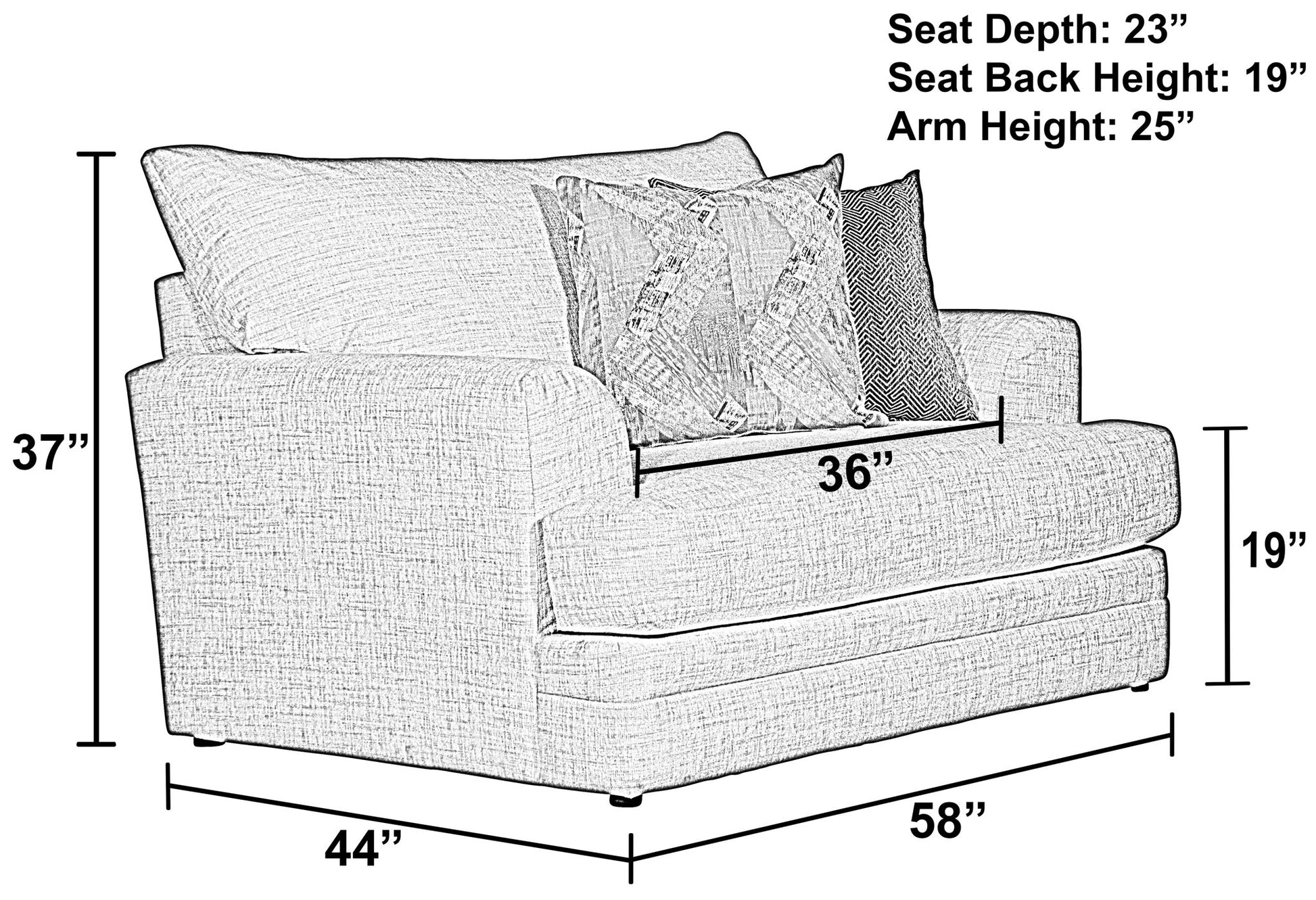 58.0"W x 44.0"D x 37.0"H - 121.0 lb